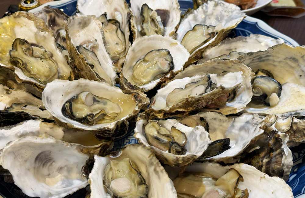 牡蠣のお振る舞い、オイスターチャウダー、あったかいおでんなど。そして生ビールや日本酒などを揃えてお待ちしております。